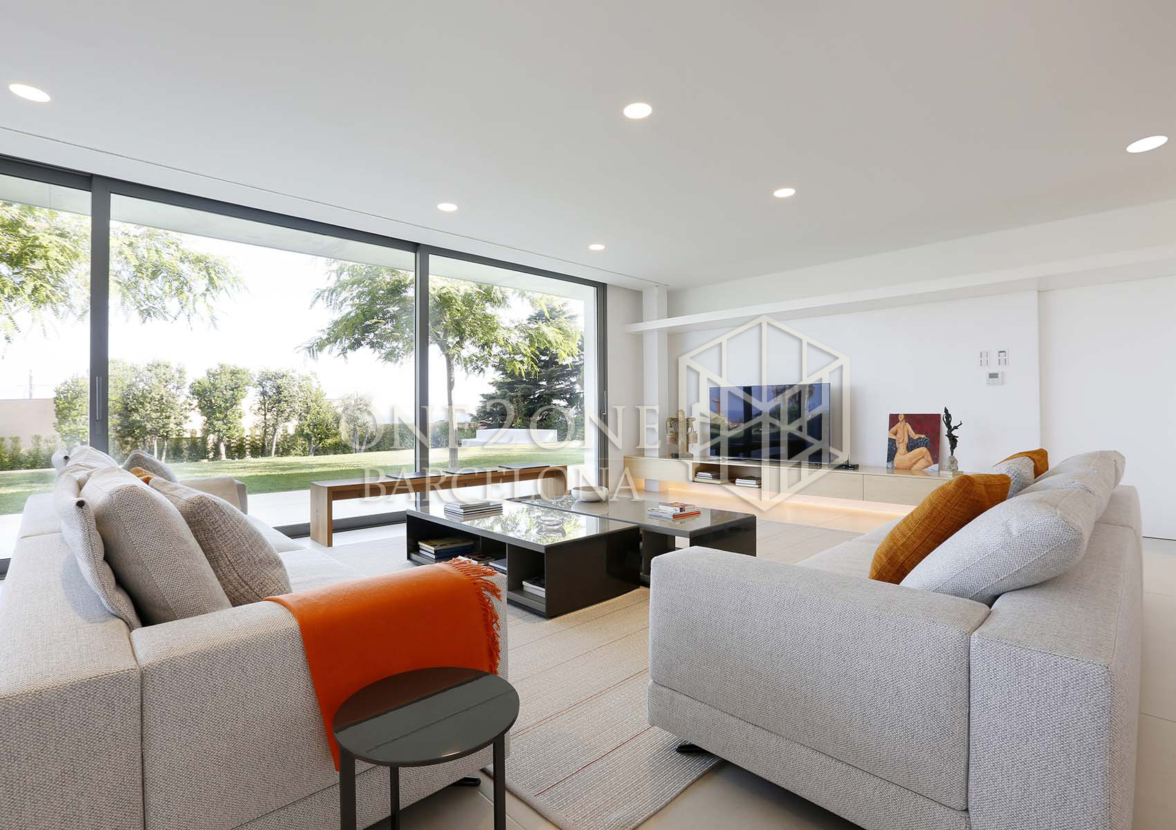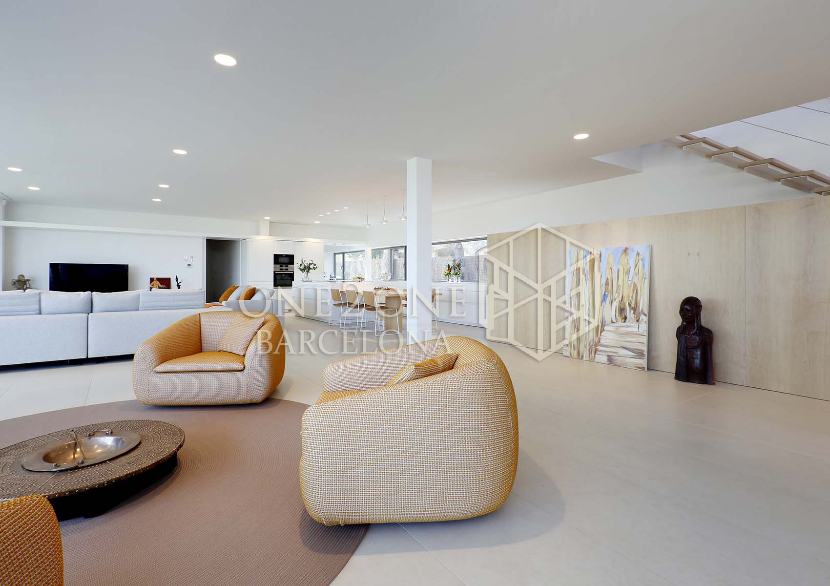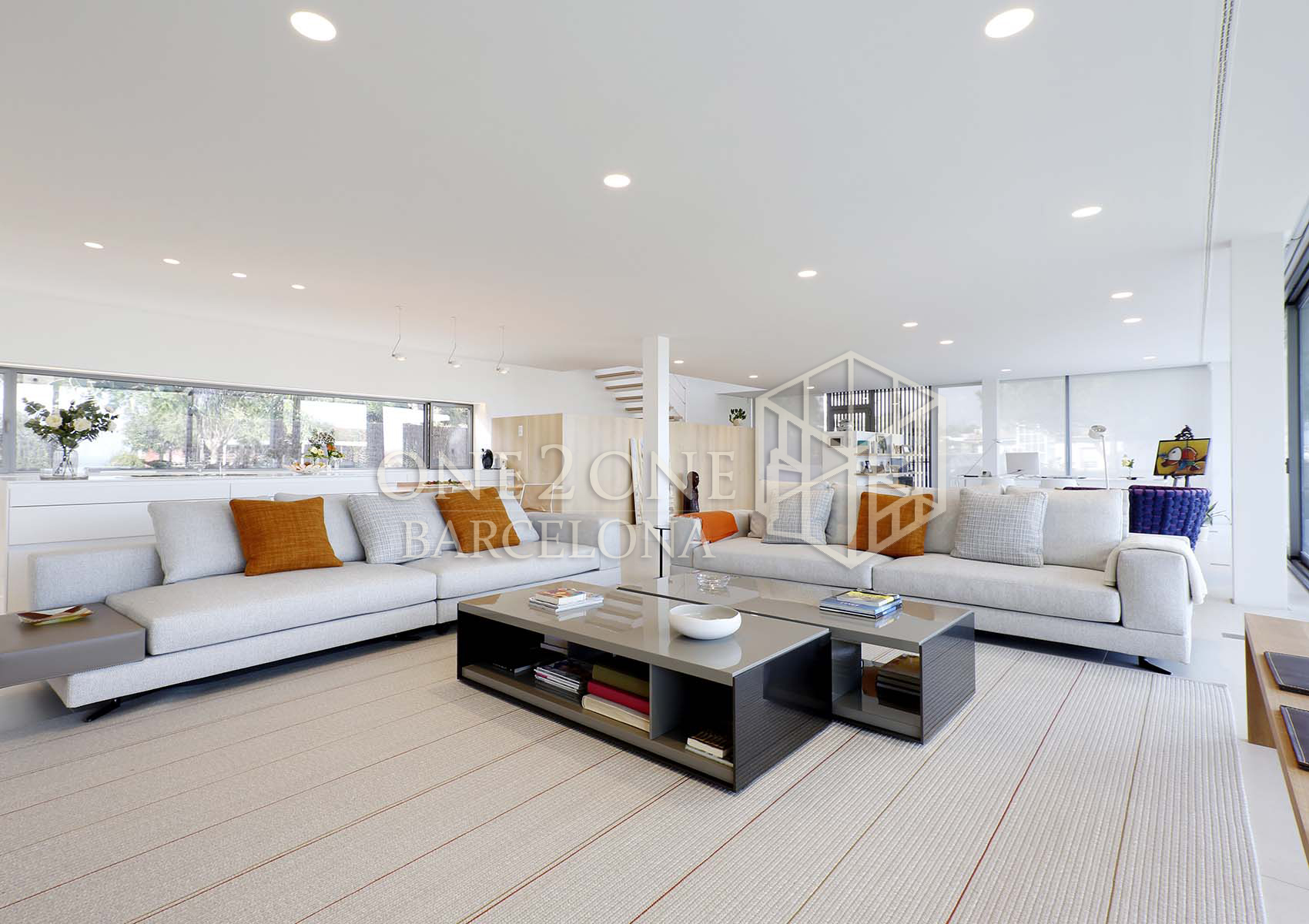 El salón tiene salida directa a la gran terraza de 100m2 con increíbles vistas al mar. Cuando las cristaleras están completamente abiertas, parece que salón y terraza hagan sea un único espacio.