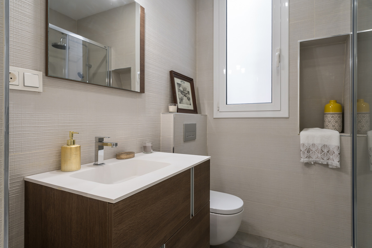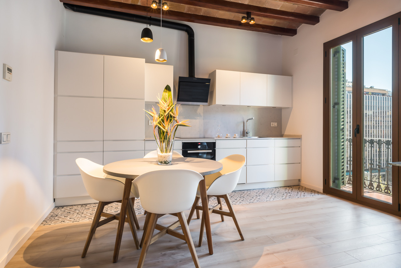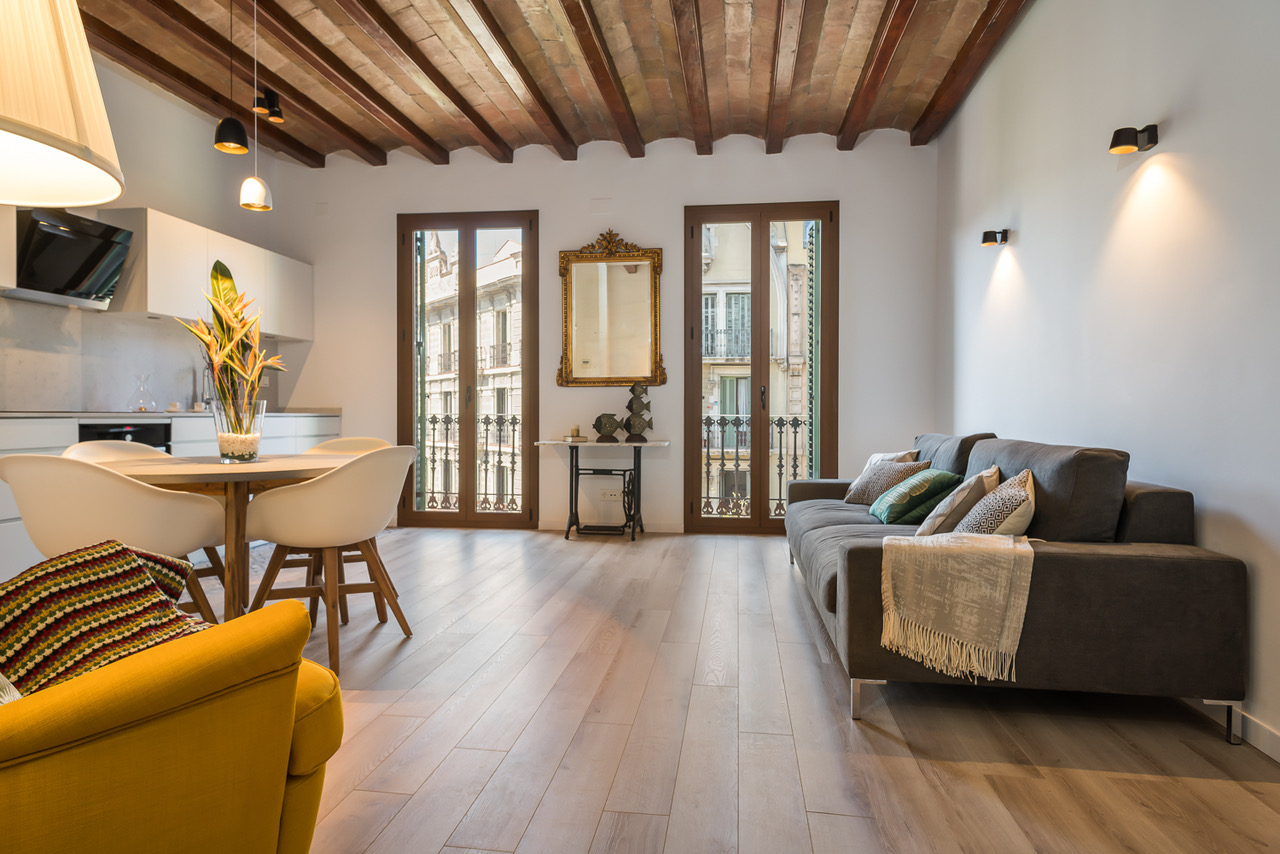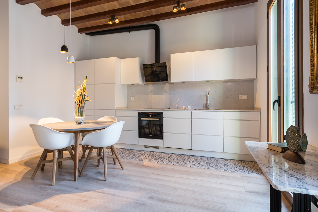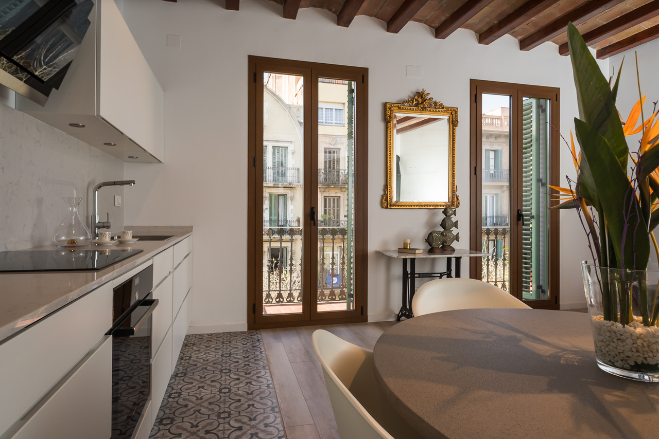 Precioso piso de diseño en la calle Aribau, totalmente amueblado y listo para entrar, que se destaca por maravillosas vistas a la ciudad y a la montaña Tibidabo. Se encuentra en una bonita finca regia en perfecto estado con ascensor moderno, en una quinta planta real. No hay escalones ni escaleras en el portal para acceder al ascensor, es totalmente plano. El piso tiene 70 m2 bien distribuidos entre un dormitorio doble con vestidor, un baño completo con plato de ducha, salón comedor con cocina americana y acceso al balcón. Sol todo el día, cada estancia tiene ventana y goza de luz natural. Se han restaurado las vigas de madera en el techo que están en perfecto estado de conservación, los suelos son de parquet de la marca Porcelanosa, la cocina está equipada, el vestidor hecho a medida, ventanas en el salón son de doble acristalamiento. El piso dispone de aire acondicionado de frío – calor. Para los más románticos la vivienda tiene chimenea de leña, que puede calentar a sus habitantes durante los meses de invierno. El piso se vende semi amueblado con sofá, mesa redonda y sillas en el salón, cama doble con cabezal en el dormitorio, la iluminación está casi toda, faltaría alguna lámpara de pie. Gracias a la altura de la vivienda, las vistas desde el balcón son estupendas y el salón tiene sol prácticamente todo el día. Pieza exclusiva en el corazón de Antigua Eixample Izquierda. Comercios, restaurantes, bares, tiendas, paradas de autobuses – todo a pie. Paseo de Gracia se encuentra a 7 min caminando.