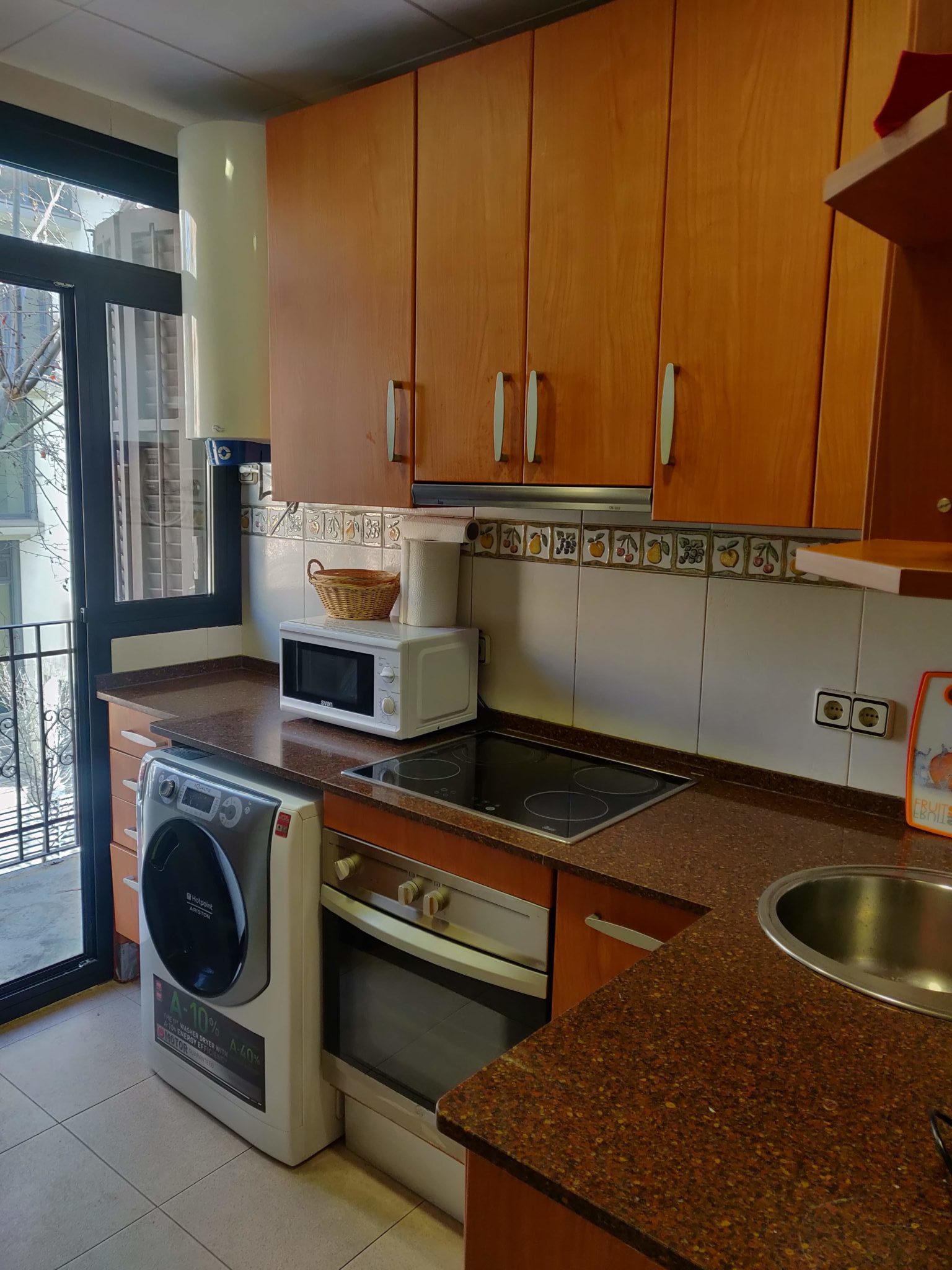 Maravilloso piso amueblado de 63m3 útiles muy bien distribuidos, con dos dormitorios, 1 baño, totalmente exterior y esquinero. Cada uno de los cuartos tiene ventana y balcón. El piso tiene un total de 6 balcones.
