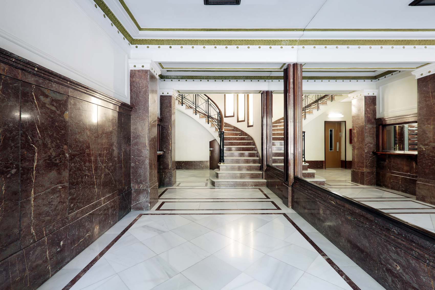 Con una entrada majestuosa en una finca del año 1950 y un conserje muy amable que os atenderá y ayudará con mucho gusto cuando lo necesitéis. Además el piso consta de una magnífica distribución. Se compone de 3 habitaciones y dos estupendos baños: una en suite con un baño de diseño y de grandes dimensiones; una doble y otra individual.