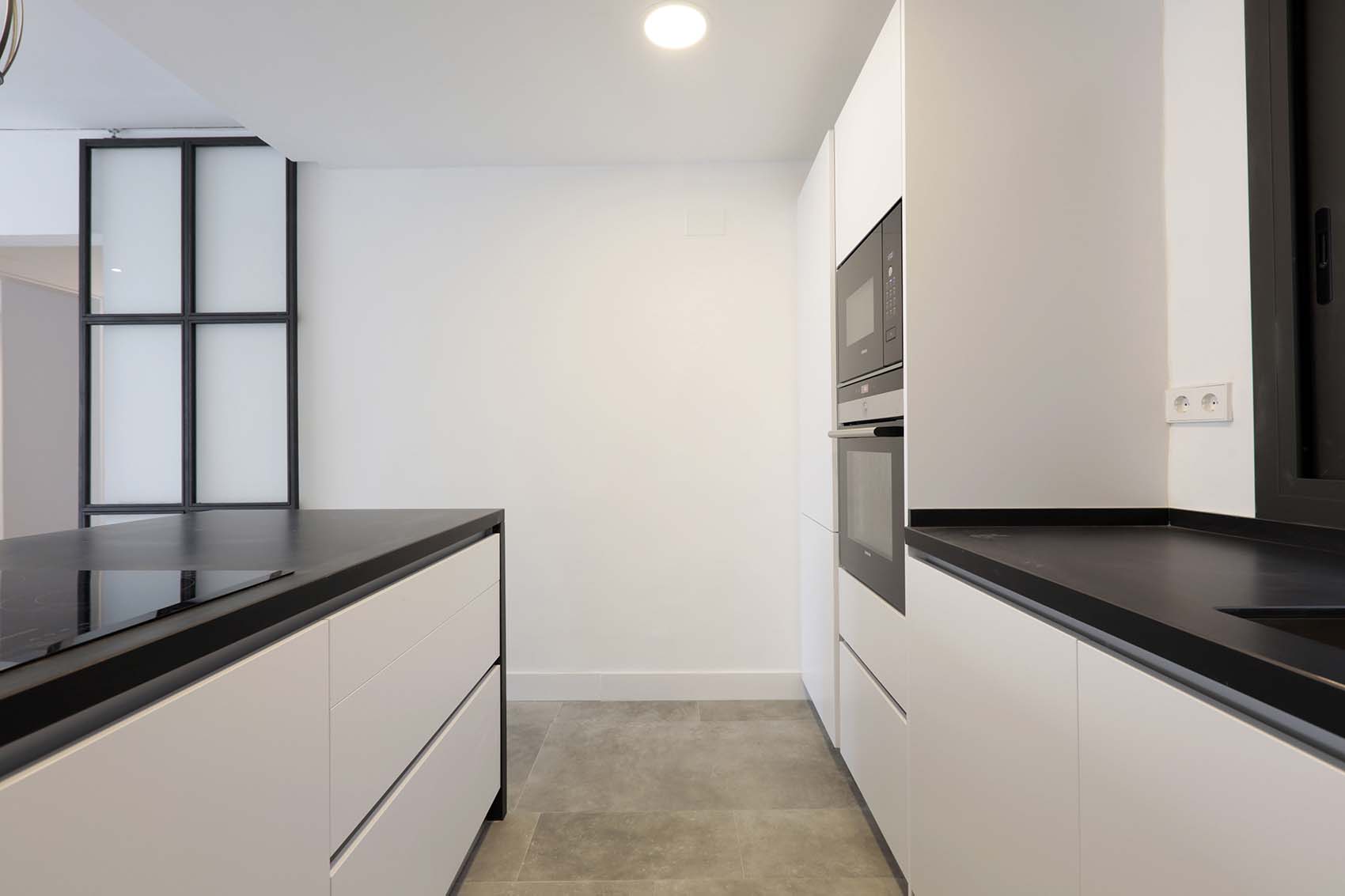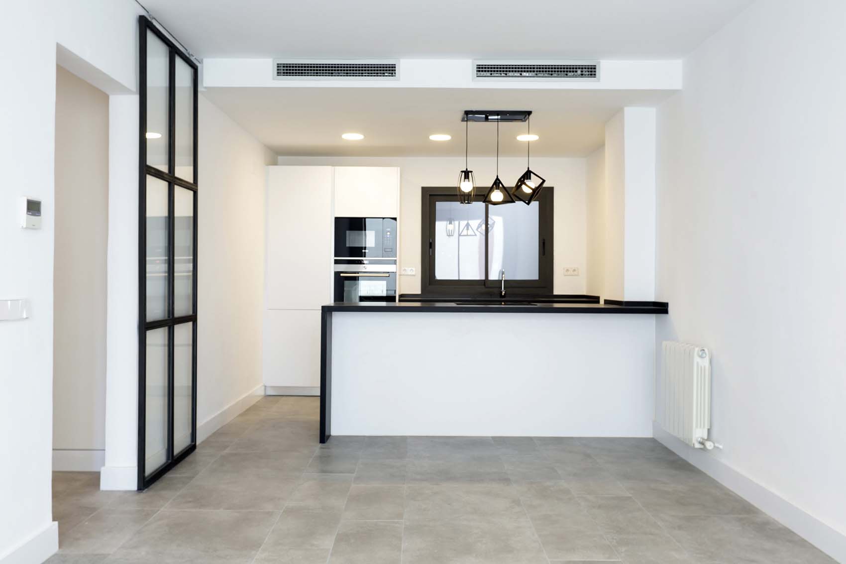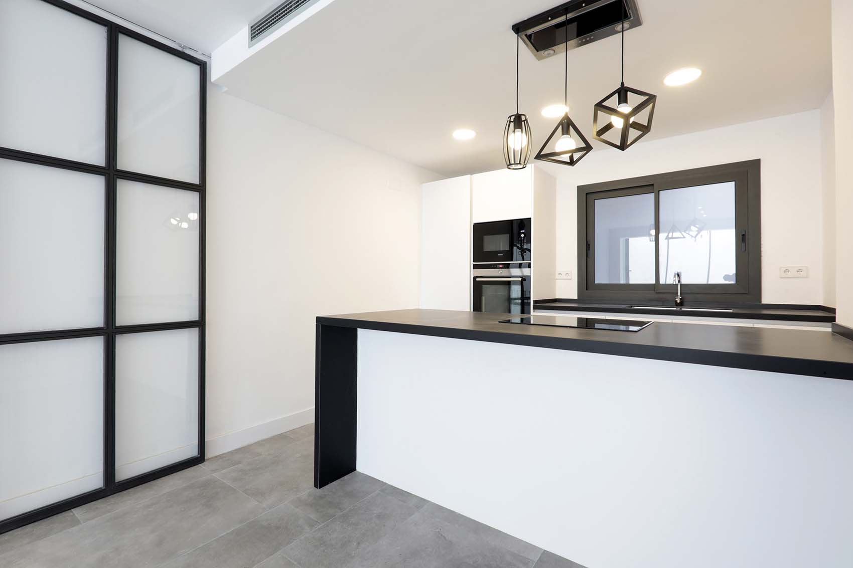 El salón comedor con un gran ventanal, consta también de una magnífica y espectacular cocina americana completamente equipada. Electrodomésticos y campana extractora de último modelo. Armarios empotrados, aire acondicionado.. . todo lo que necesita para sentirse a gusto en este precioso espacio de 100m2.